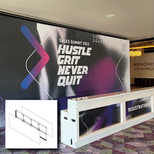 8’x 8’ SEG Frame with Fabric Graphic (with or without 85″ TV monitor)